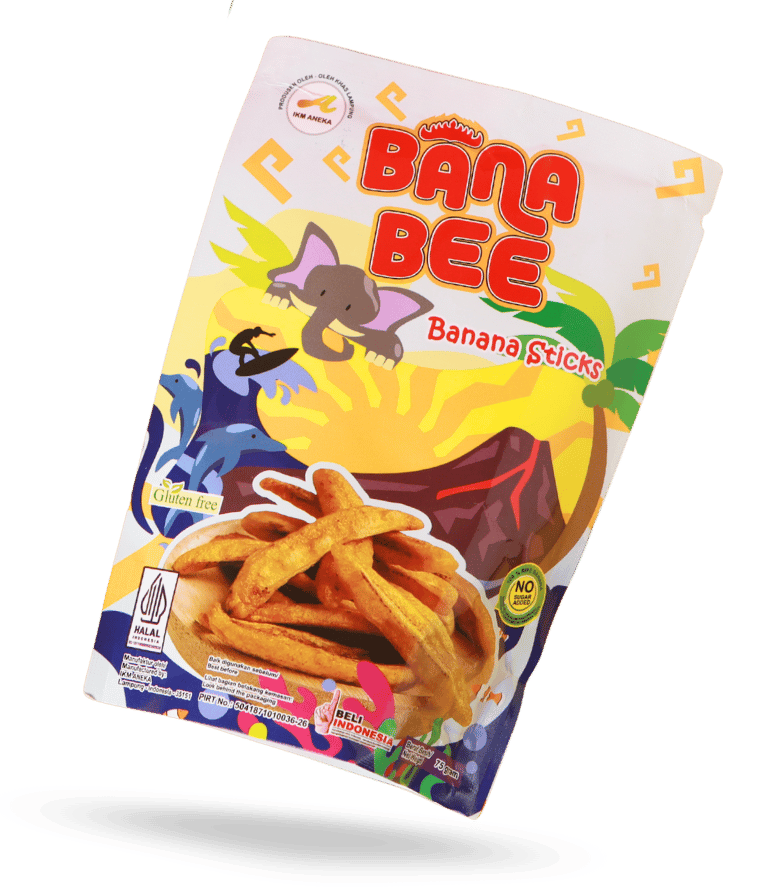 BanaBee adalah stik pisang dari pisang Muli khas Lampung, tersedia dalam ukuran 75g dan 100g. Diolah dengan suhu rendah untuk menjaga kerenyahan dan gizinya, cocok sebagai camilan sehat untuk pasar lokal maupun ekspor.